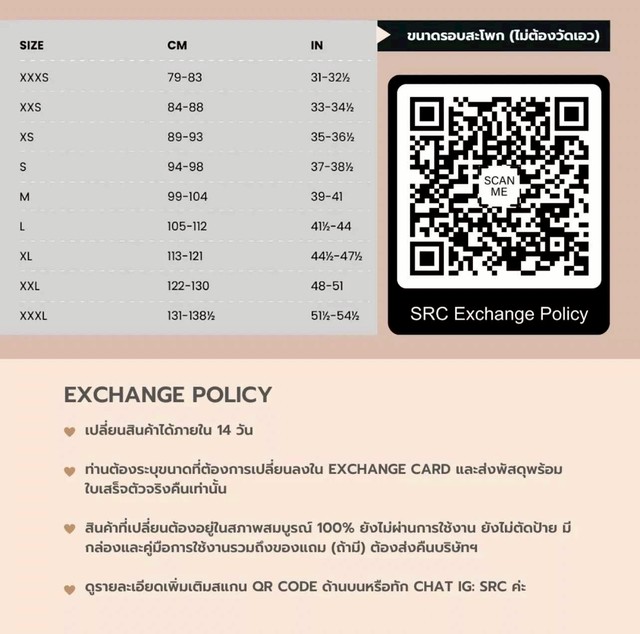 **Exchange Policy: เปลี่ยน size ภายใน 7 วัน (Brand New Condition) ไม่สามารถเปลี่ยนแบบหรือคืนเงินได้