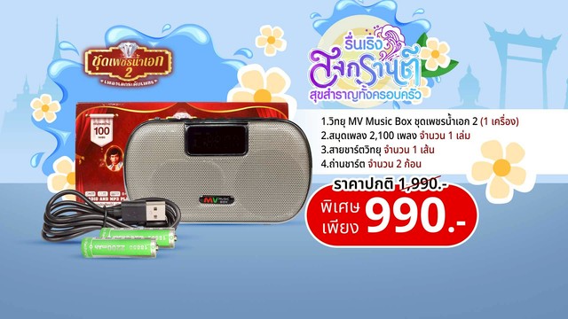 - วิทยุเพลง MV Music Box ชุดเพชรน้ำเอก 2 รุ่น MVB-2 จำนวน 1 เครื่อง