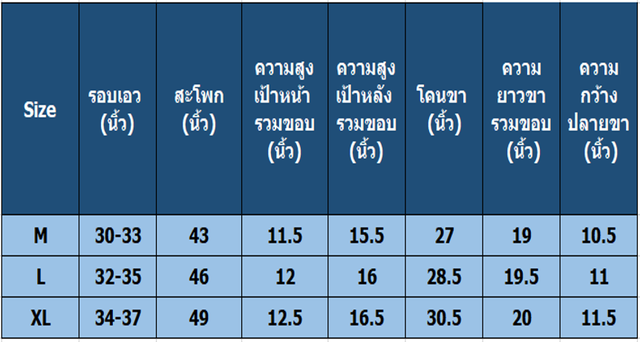 - กระเป๋าลึกและตัดเย็บอย่างดีลดปัญหากระเป๋ารั่ว และของหล่นจากกระเป๋ากางเกง