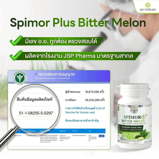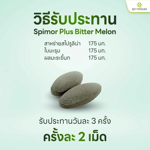 - สุภาพโอสถ Spimor plus Bitter Melon ขนาด 30 เม็ด จำนวน 6 กระปุก