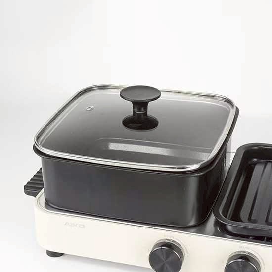 จัดปาร์ตี้เมนูชาบูและปิ้งย่างได้อย่างสะดวกสบาย ด้วยเตาย่างอเนกประสงค์ 2in1 จาก AIKO เตาปิ้งย่างพร้อมหม้อชาบู พื้นผิวเคลือบเทฟลอน ไม่ทำให้อาหารติด ให้อาหารน่ารับประทาน และทำความสะอาดง่าย หน้าเตากว้าง ให้คุณวางเนื้อสัตว์ได้อย่างเต็มพื้นที่ พร้อมหม้อชาบู โดยแยกปรับระดับระหว่างเตาปิ้งย่างกับหม้อชาบูได้อย่างอิสระ ขนาดกะทัดรัด น้ำหนักเบา สามารถใช้งานได้ในพื้นที่จำกัด ทั้งคอนโด และหอพัก