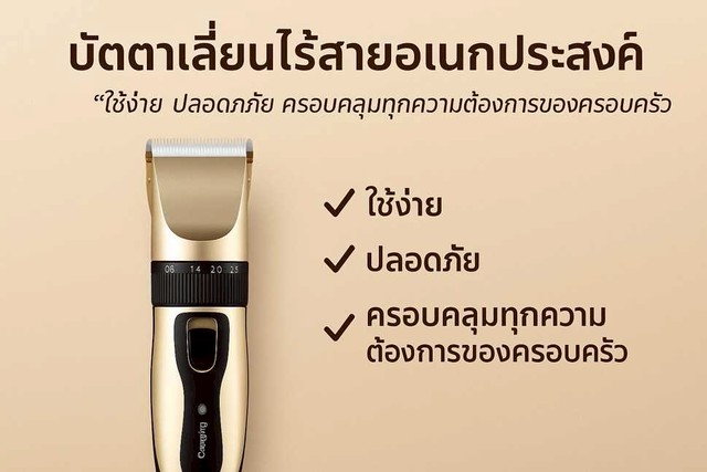 - ตัดผมเองที่บ้านได้ง่าย ออกแบบให้ใช้งานง่าย แม้ไม่มีประสบการณ์