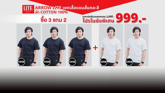 - Arrow Lite เสื้อคอกลม แขนสั้น สีขาว จำนวน 2 ตัว