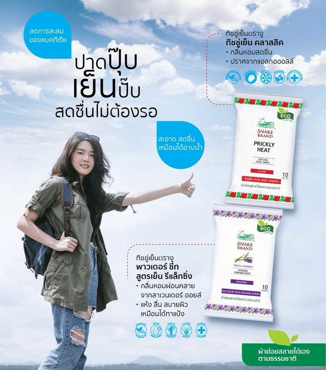 - Snake Brand Prickly Heat Cooling Body Wipes Classic กลิ่น Classic ขนาด 10 แผ่น จำนวน 2 แพค