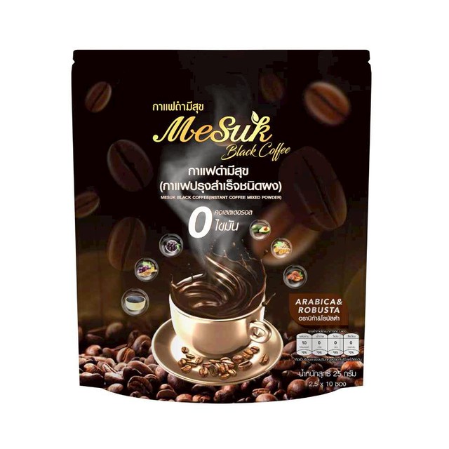 - Mesuk กาแฟดำ สูตรไม่มีน้ำตาล ขนาด 10 ซอง จำนวน 10 แพค