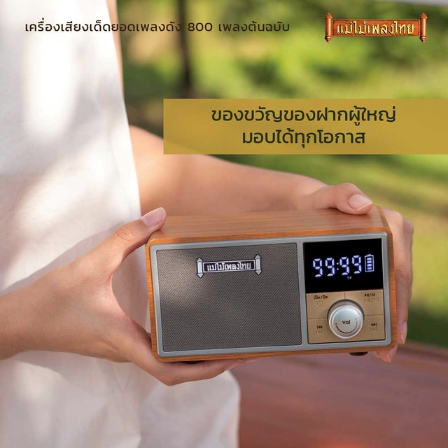 เครื่องเล่นเพลงที่บรรจุบทเพลงต้นฉบับระดับตำนาน ในยุคทองของเพลงไทย (2500 - 2510) ถึง 800 บทเพลง ให้ผู้ฟังได้ระลึกถึงความสุข ความทรงจำเมื่อวันวาน ผ่านเสียงร้องเดิม ดนตรีเดิม สร้างความสุข และรอยยิ้มให้คุณพ่อคุณแม่ สมัยท่านยังเป็นหนุ่มสาว ดีไซน์สวยงาม ตัวเครื่องวัสดุอุปกรณ์ที่ดี ลำโพงคุณภาพ เพื่อคุณภาพเสียงที่ดี