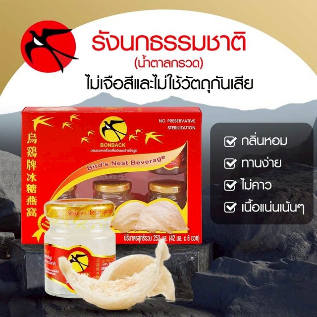 - เครื่องดื่มรังนกสำเร็จรูป ผลิตจากรังนกแท้จากธรรมชาติ ที่มีคุณภาพดี