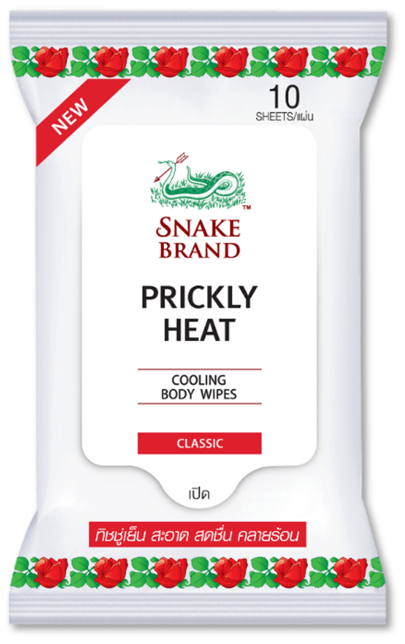 Snake Brand Prickly Heat Cooling Body Wipes Classic กลิ่น Classic