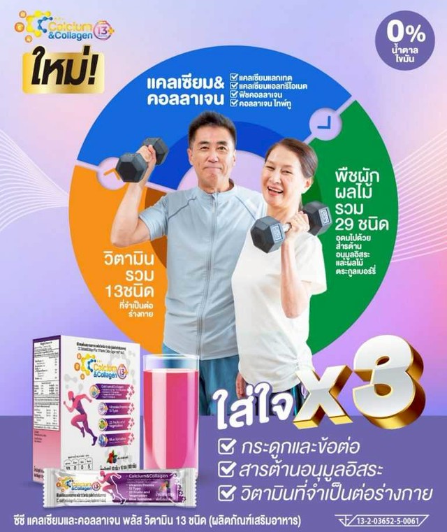 ซีซี แคลเซียม แอนด์ คอลลาเจน ผลิตภัณฑ์เสริมสร้างมวลกระดูก มีแคลเซี่ยมที่ละลายน้ำได้ดี ดูดได้กว่า 95% ช่วยเพิ่มมวลกระดูกและดูแลปัญหาข้อเข่าลั่นได้ และยังมีคอลลาเจน ไทพ์ ทู ที่ช่วยเพิ่มเนื้อเยื่อ เนื้อเยื่อเกี่ยวพัน ให้กับร่างกายได้มากขึ้นด้วย บำรุงมวลกระดูกและกล้ามเนื้อแข็งแรง, กระดูกเปราะและแตกง่าย, กระดูกพรุน, ปวดตามข้อและร่างกาย พร้อมยังมีส่วนช่วยดูแลสุขภาพผิว, ช่วยเพิ่มความชุ่มชื่นให้กับผิว, คอลลาเจนและอลาสติน