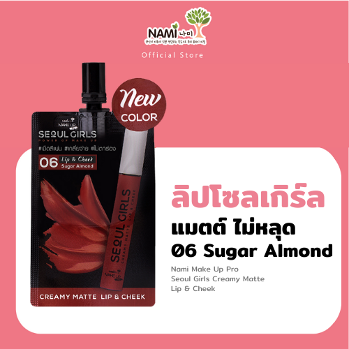 ลิปโซลเกิร์ลนามิ 06 Sugar Almond แมตต์ Nami Make Up Pro Seoul Girls Creamy Matte Lip & Cheek