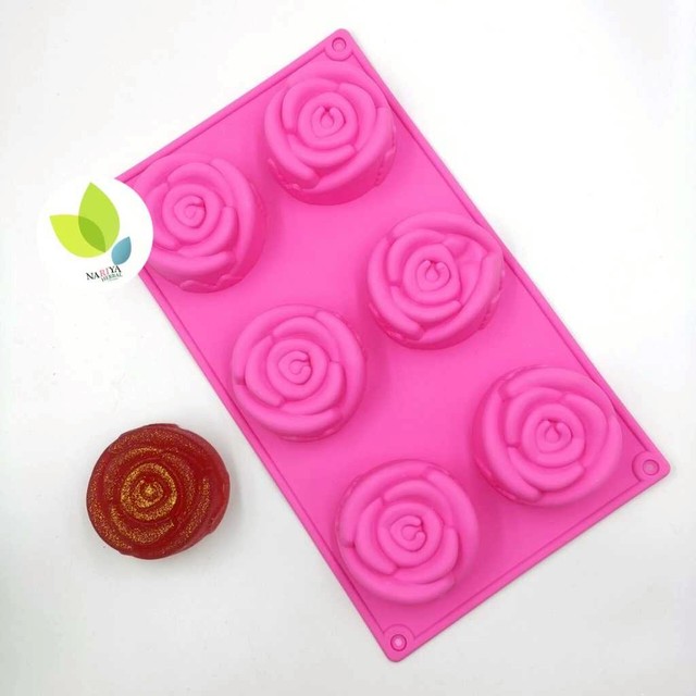 แม่พิมพ์สบู่ แม่พิมพ์ขนม แม่พิมพ์ซิลิโคน รูปทรงกุหลาบกลีบมน 6 ช่อง 100 กรัม (PM-M100-008)