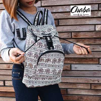 กระเป๋าเป้ผ้าแคนวาสลายช้างไทยใบใหญ่ สายเชือกรูดพร้อมตัวล็อคปิดด้านหน้า