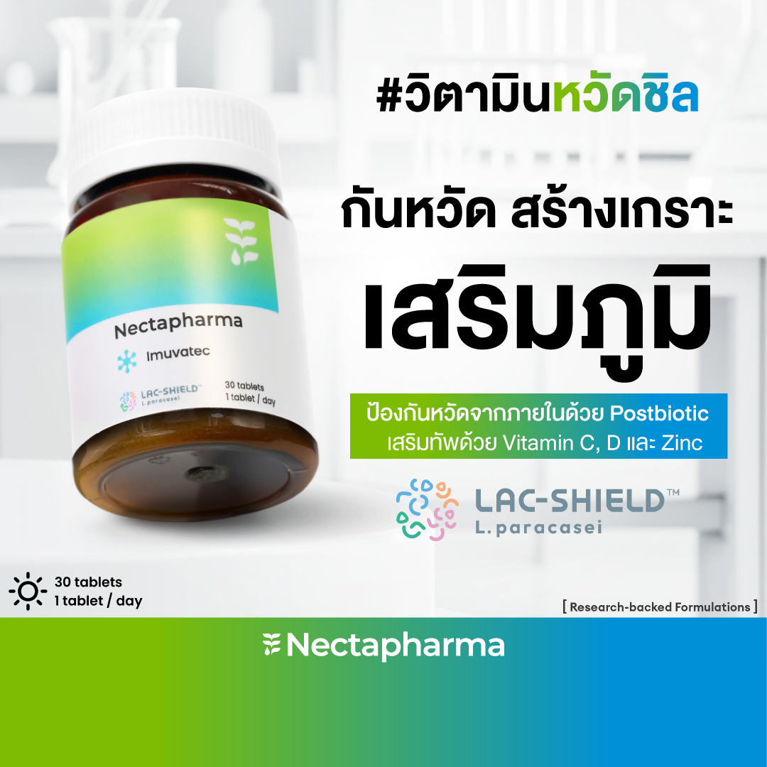🦠Lac-shield (Lactobacillus paracasei MCC1849) : Postbiotic สายพันธุ์เฉพาะนวัตกรรมจากประเทศญี่ปุ่น ช่วยเสริมภูมิคุ้มกันให้ร่างกาย ทำให้เป็นหวัดยากขึ้น ซึ่งวิตามินซีเพียงอย่างเดียวทำไม่ได้ นอกจากนี้ยังช่วยบรรเทาอาการหวัด และทำให้หวัดหายไวขึ้น