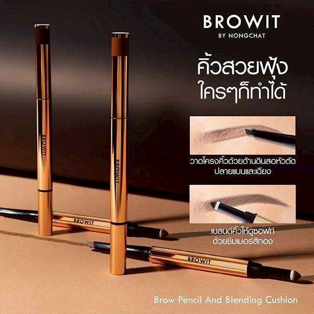 คิ้วสวยเพอร์เฟ็ค เป็นธรรมชาติด้วย BROWIT Brow Pencil And Blending Cushion นวัตกรรมใหม่ที่รวมดินสอเขียนคิ้วและเบลนดิ้งคูชั่นไว้ในแท่งเดียว ด้านดินสอหัวตัด ปลายแบนและเฉียง ช่วยให้การเขียนคิ้วง่ายกว่าปกติ สามารถปรับองศาการเขียนให้ได้เส้นหนาบางตามต้องการ ด้านคูชั่น ช่วยเพิ่มความโดดเด่นให้คิ้วด้วยชิมเมอร์สีทอง เป็นประกาย ใช้เบลนด์คิ้วให้คิ้วดูซอฟท์ สวยฟุ้งเป็นธรรมชาติ สร้างสรรค์ผลิตภัณฑ์โดย น้องฉัตร ช่างแต่งหน้ามืออาชีพ ระดับแนวหน้าของเมืองไทย
