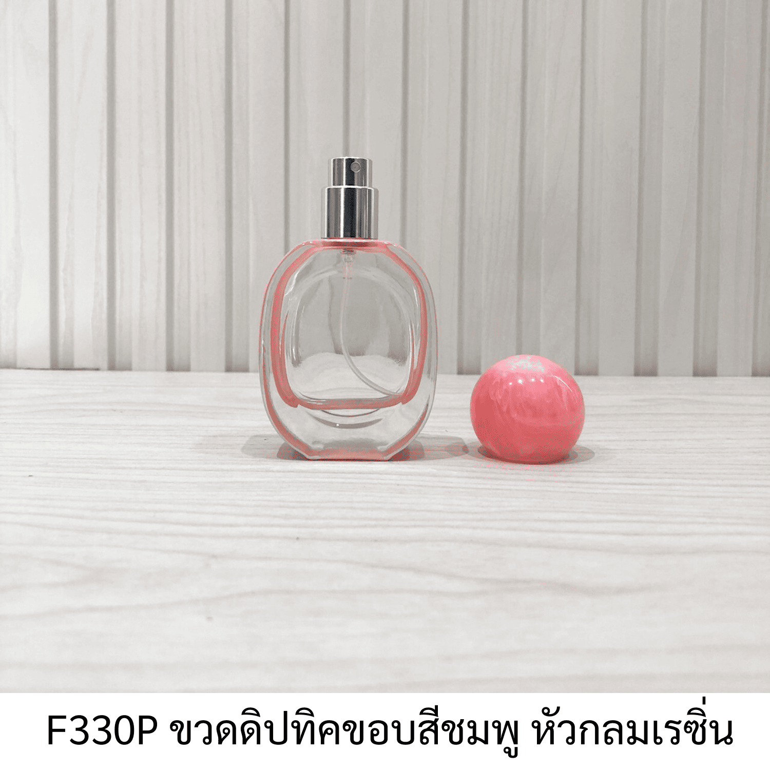 "F330-P ขวดดิปทิคขอบสีชมพู หัวกลมเรซิ่น