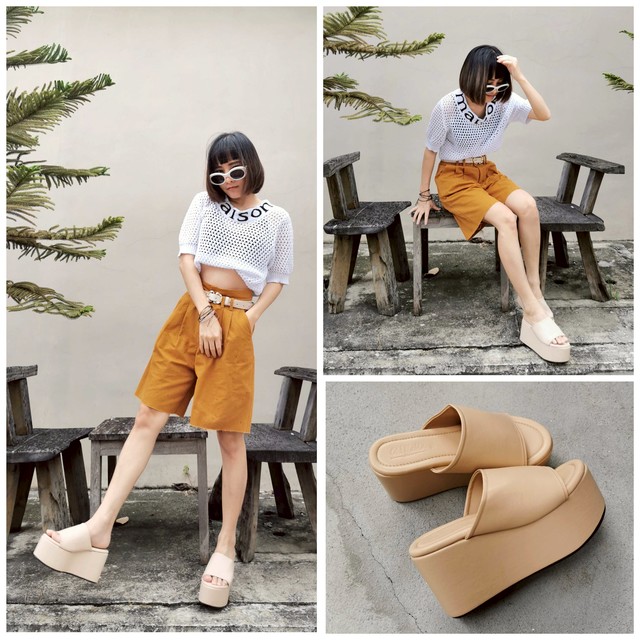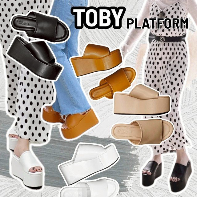 รองเท้าแตะส้นตึก สูง3นิ้ว สีขาว , น้ำตาล , แซนด์ ( รุ่น TOBY )