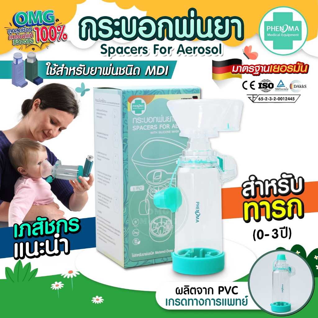 🟢 กระบอกพ่นยา ยี่ห้อ PHENOMA มาตรฐานเยอรมันนี Spacer for Aerosol witn Silicone Mask 🟢