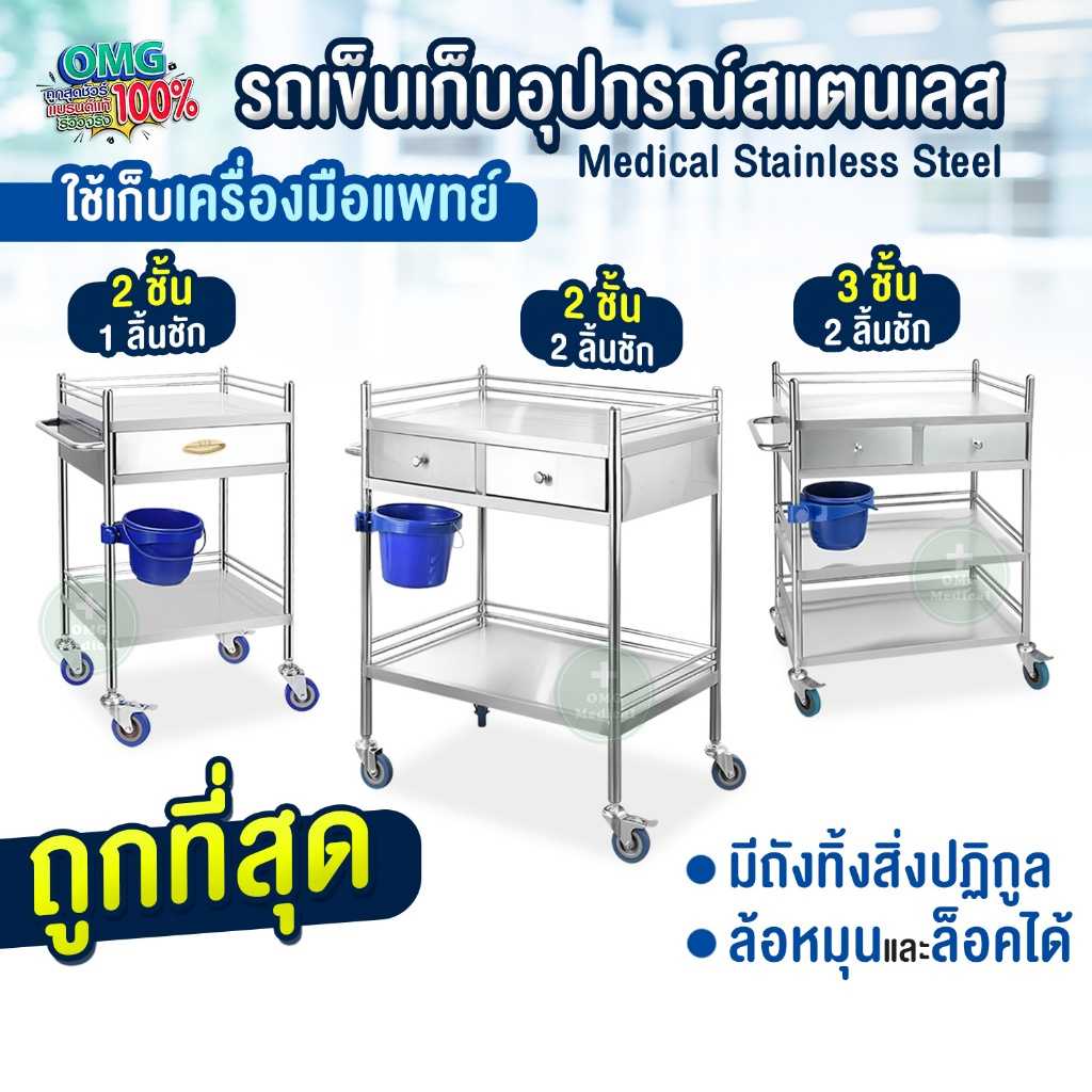 #รถเข็นอุปกรณ์สแตนเลส #รถเข็นแบบสำเร็จรูป #รถเข็นเครื่องมือแพทย์ #รถเข็น2ชั้น #รถเข็นมีล้อเลื่อน #รถเข็นแพทย์ #omgmedical #อุปกรณ์ทางการแพทย์