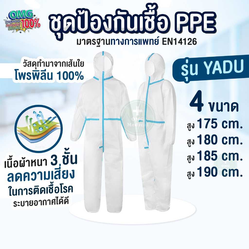 ชุดป้องกัน PPE รุ่น YADU ป้องกันเชื้อโรค ชุดใส่ป้องกันโควิด