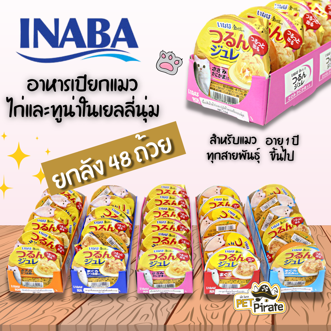 Inaba ถ้วย อาหารเปียกแมว ไก่และ ทูน่าในเยลลี่นุ่ม [ยกลัง 48 ถ้วย] แบบถ้วย กินง่าย ย่อยง่าย
