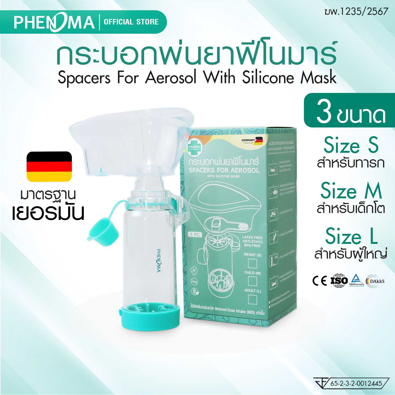 กระบอกพ่นยา PHENOMA Spacer for Aerosol with Silicone Mask (S, M, L)
