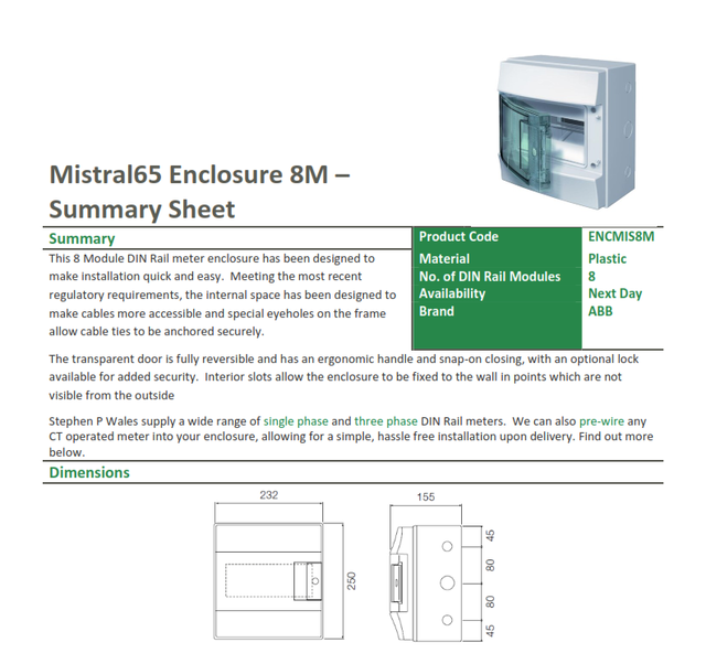 ABB MISTRAL 8 Modules DIN RAIL METER ENCLOSURE ตู้คอนซูเมอร์ยูนิต IP65