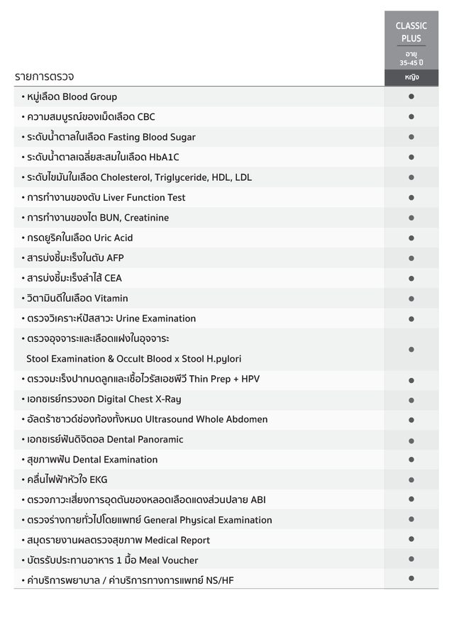 แพ็กเกจตรวจสุขภาพ Classic Plus สำหรับผู้หญิง อายุ 35-45 ปี