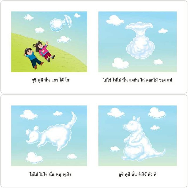 เรื่องย่อ : ลีลาและชาลีชวนกันนอนดูเมฆบนเนินหญ้า และทั้งสองก็ต้องประหลาดใจกับรูปร่างเมฆบนท้องฟ้าที่เปลี่ยนแปลงไปตลอดเวลา เอ...แล้วพี่น้องทั้งสองจะเห็นเมฆเป็นรูปอะไรกันบ้างนะ ร่วมหาคำตอบพร้อมสร้างจินตนาการผ่านการเรียนรู้สระไปพร้อมกับลีลาและชาลีกันเลย