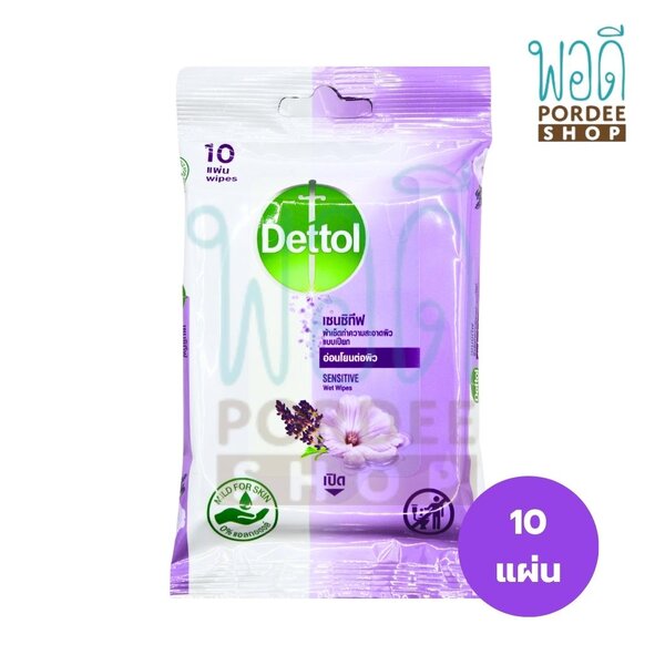 เดทตอล เซนซิทีฟ ผ้าเช็ดทำความสะอาดผิวแบบเปียก บรรจุ 10 แผ่น (สีม่วง)
