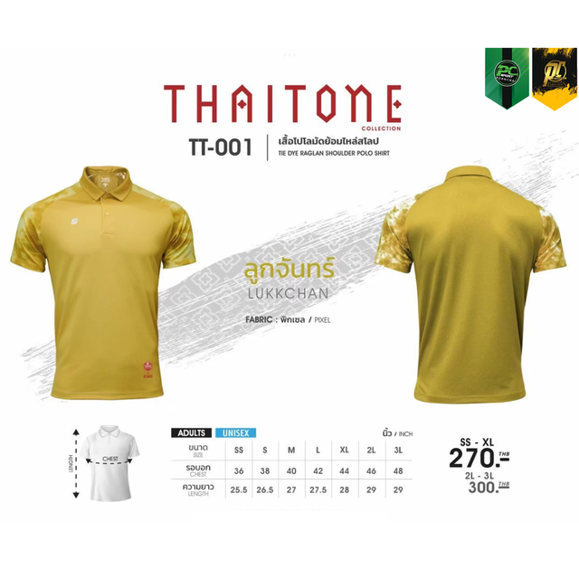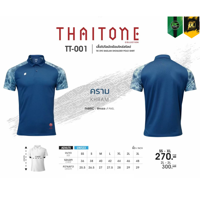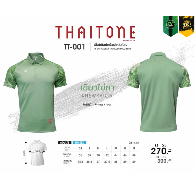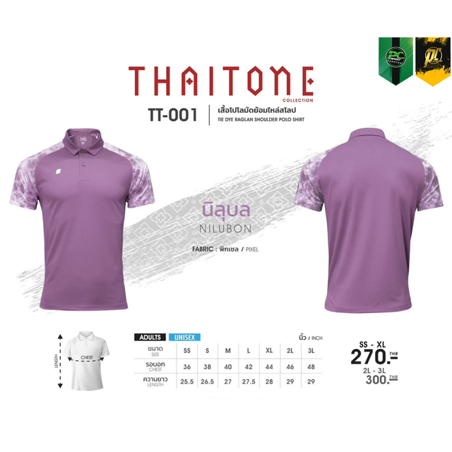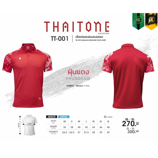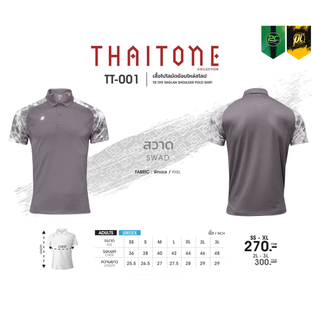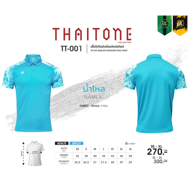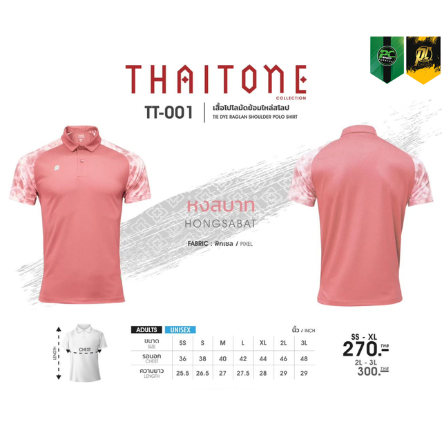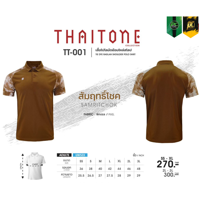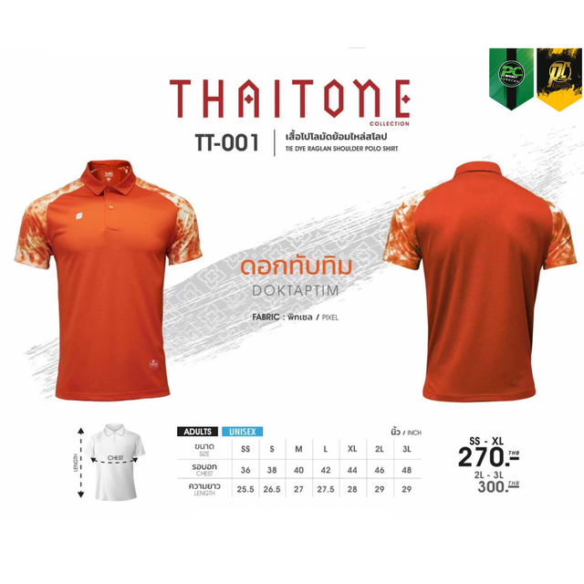 TT-001 เสื้อโปโล แต่งแขนลายมัดย้อม ใส่ได้ทั้ง ชาย-หญิง