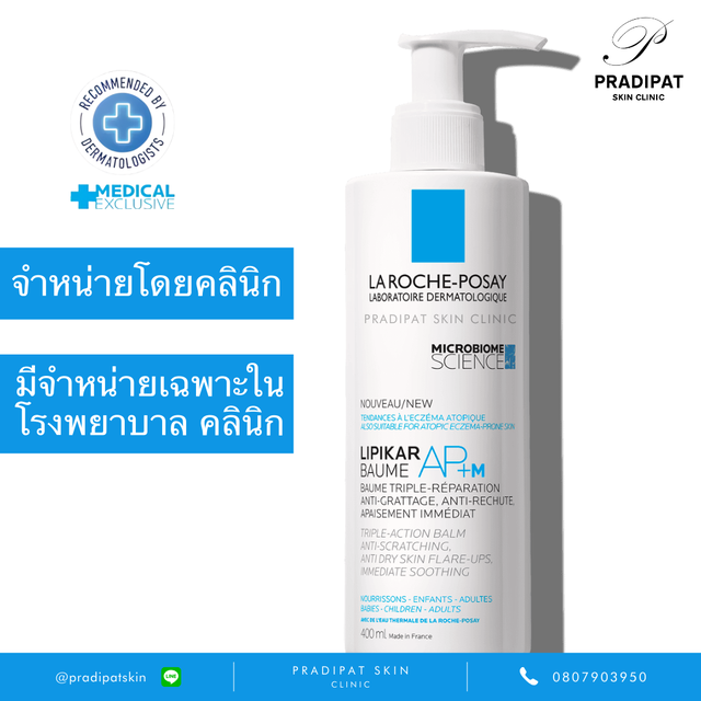 La Roche-Posay NEW LIPIKAR Baume AP+M คืนสมดุลให้กับผิว ไมโครไบโอม บำรุงและลดการเกิดรอยขีดข่วนจากอาการคัน ด้วยประสิทธิภาพในการลดอาการการเกิดซ้ำจึงช่วยลดการลุกลามที่จะอาจเกิดขึ้นกับผิว บำรุงและคืนความชุ่มชื้นให้กับเกราะป้องกันผิว สูตรเฉพาะสำหรับทารก เด็ก และผู้ใหญ่ที่มีปัญหาผิวแห้ง ผิวที่มีแนวโน้มจะเป็นผิวหนังอักเสบหรือผิวแพ้ง่าย