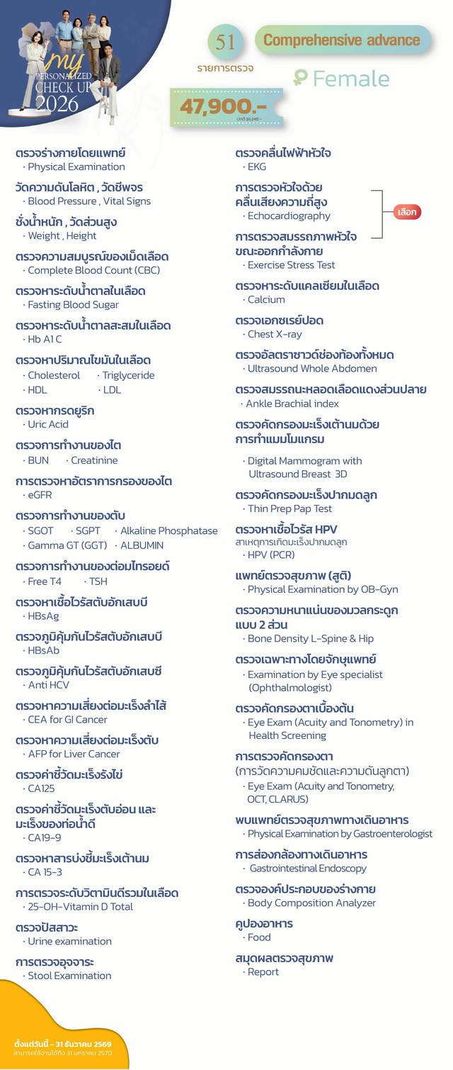 แพ็กเกจตรวจสุขภาพ Comprehensive advance (หญิง)