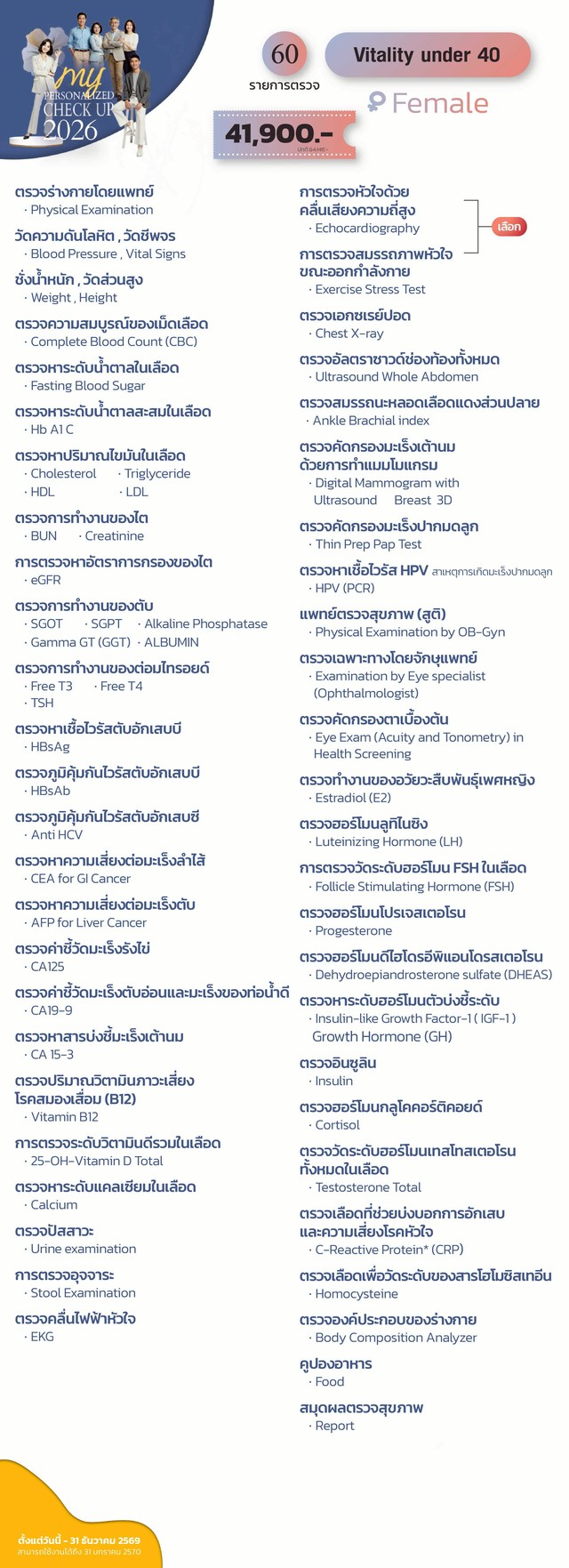 แพ็กเกจตรวจสุขภาพ Vitality under 40 (หญิง)