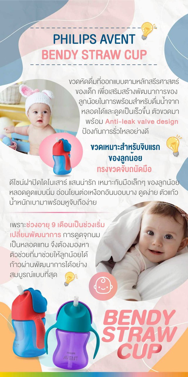เพราะช่วงอายุ 9 เดือนเป็นช่วงเริ่มเปลี่ยนพัฒนาการ การดูดจุกนมเป็นหลอดแทน จึงต้องมองหาตัวช่วยที่มาช่วยให้ลูกน้อยได้ก้าวผ่านพัฒนาการได้อย่างสมบูรณ์แบบที่สุด
