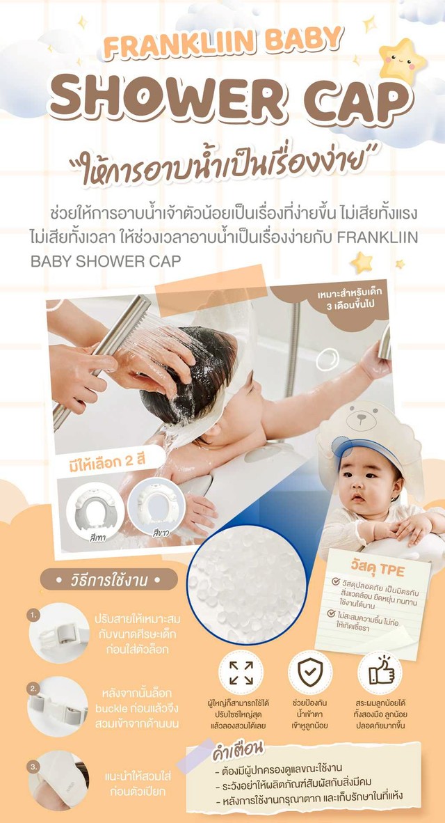 ใช้ FRANKLIIN BABY SHOWER CAP ไม่มีน้ำตา ! เวลาอาบน้ำสระผมอีกต่อไป!🛁🫧