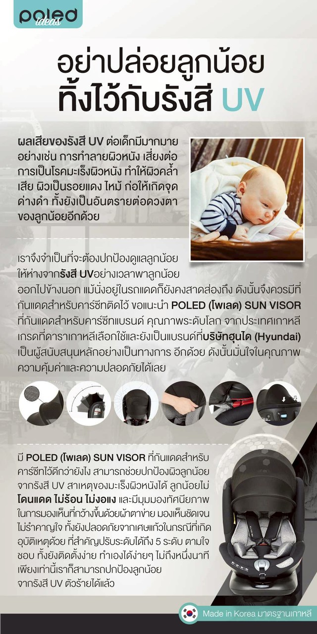 POLED (โพเลด) ปกป้องลูกน้อยจากรังสี UV ด้วย SUN VISOR ที่กันแดดสำหรับคาร์ซีท