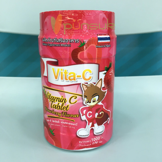 VITA-C 25MG STRAWBERRY วิตามินซี(สีแดง) 1000เม็ด 1กระปุก