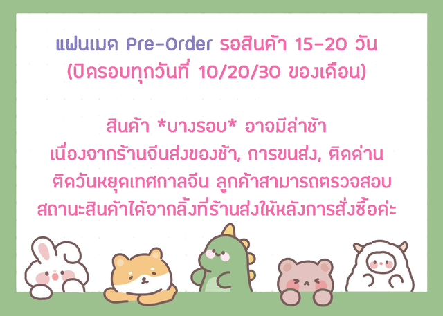 เนื่องจากเป็นสินค้า Pre-Order อาจใช้เวลารอสินค้านานหลายสัปดาห์ เพื่อป้องกัน Order ถูกยกเลิกจากระบบและผู้ซื้อ ระหว่างรอสินค้า