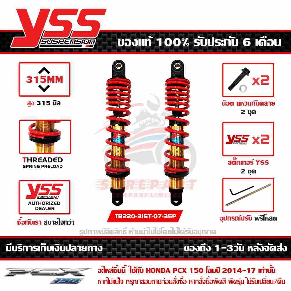 โช๊คหลัง PCX 150 ปี 2012-17 YSS รุ่น DTG PLUS ความยาว 315มม. สปริงแดง กระบอกทอง TB220-315T-07-35P