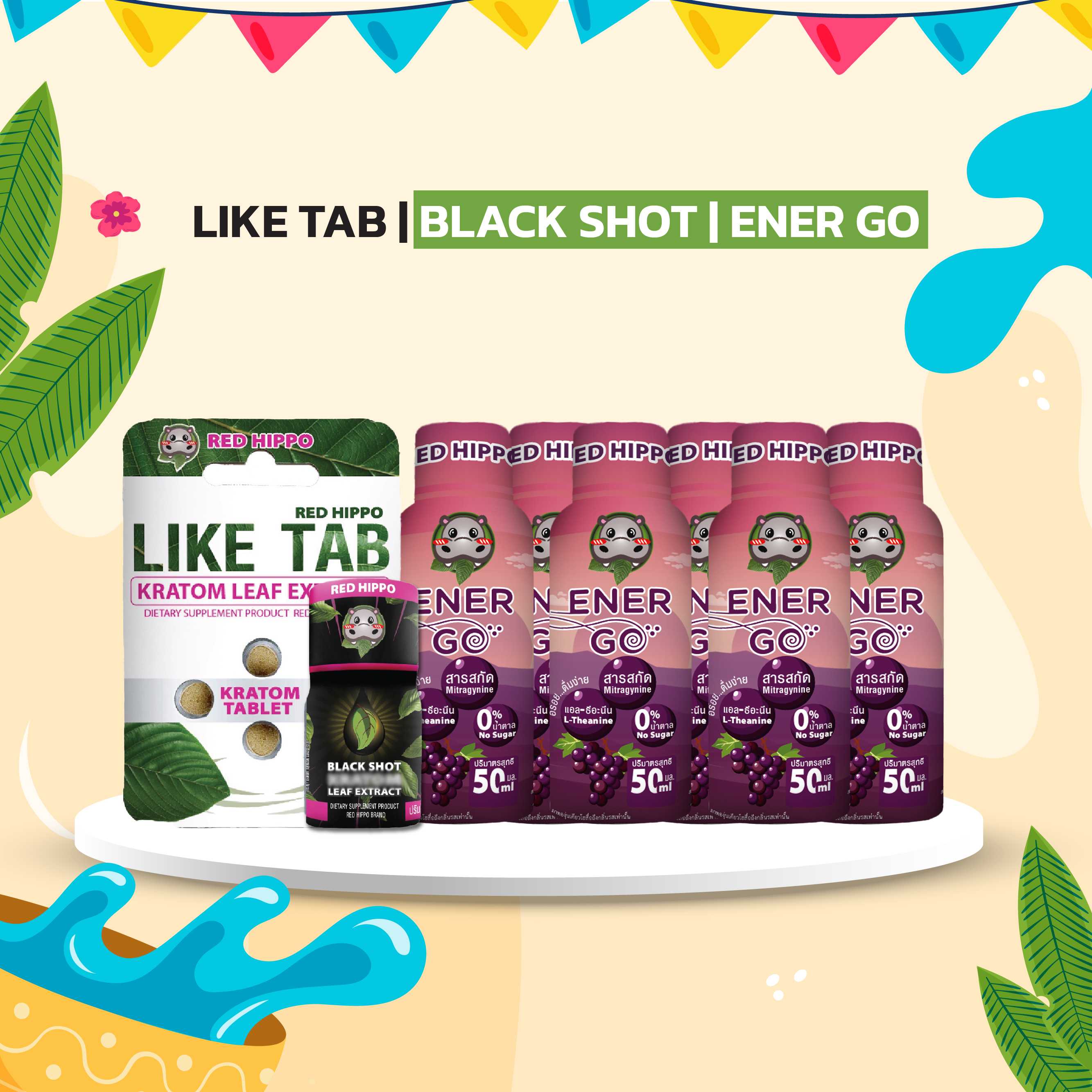 โปรโมชั่น 3 สหายพลังฮิปโป LIKE TAB 1 แผง | BLACK SHOT 1 ขวด | ENER GO 1 แพ็ก