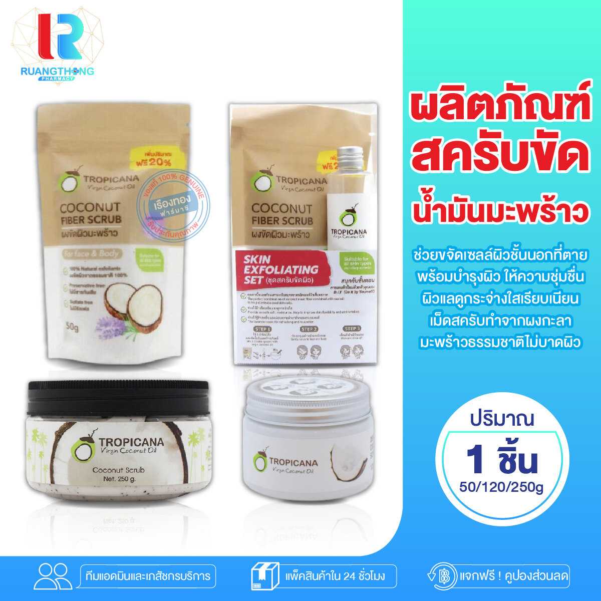 ทรอปิคานา เจลสครับมะพร้าว Tropicana สำหรับนวดผิวหน้าและผิวกาย DESICCATED COCONUT OIL SCRUB