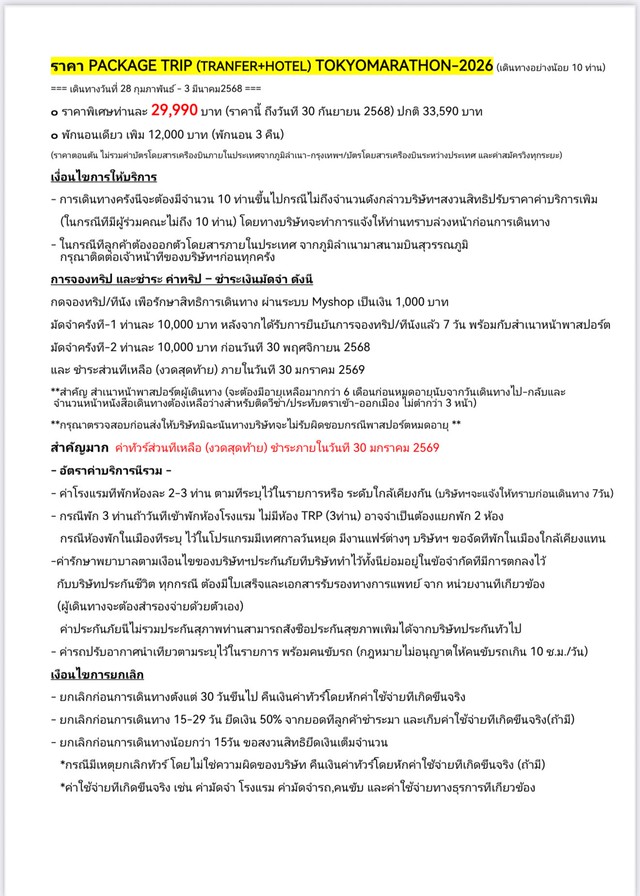 === รายละเอียด Package Trip TOKYO MARATHON2026 ===