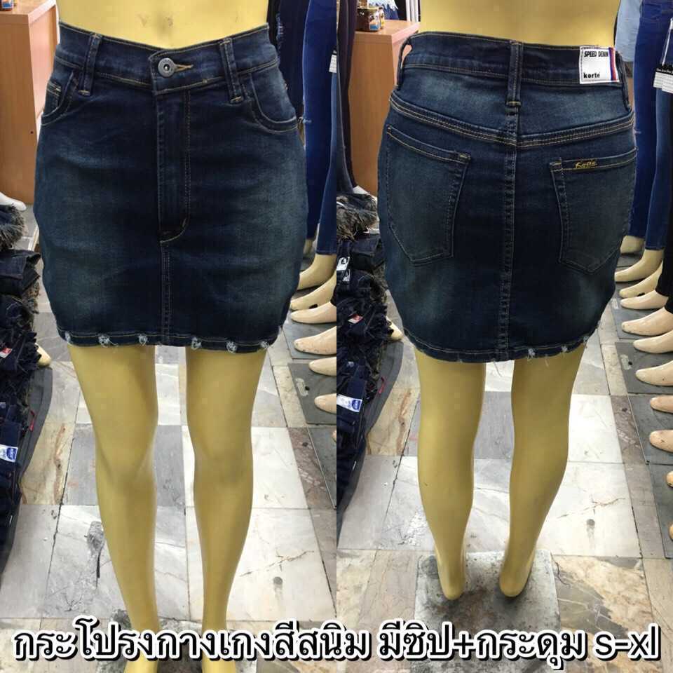 กางเกงกระโปรงยีนส์ ยืด ฟอกสีสนิม