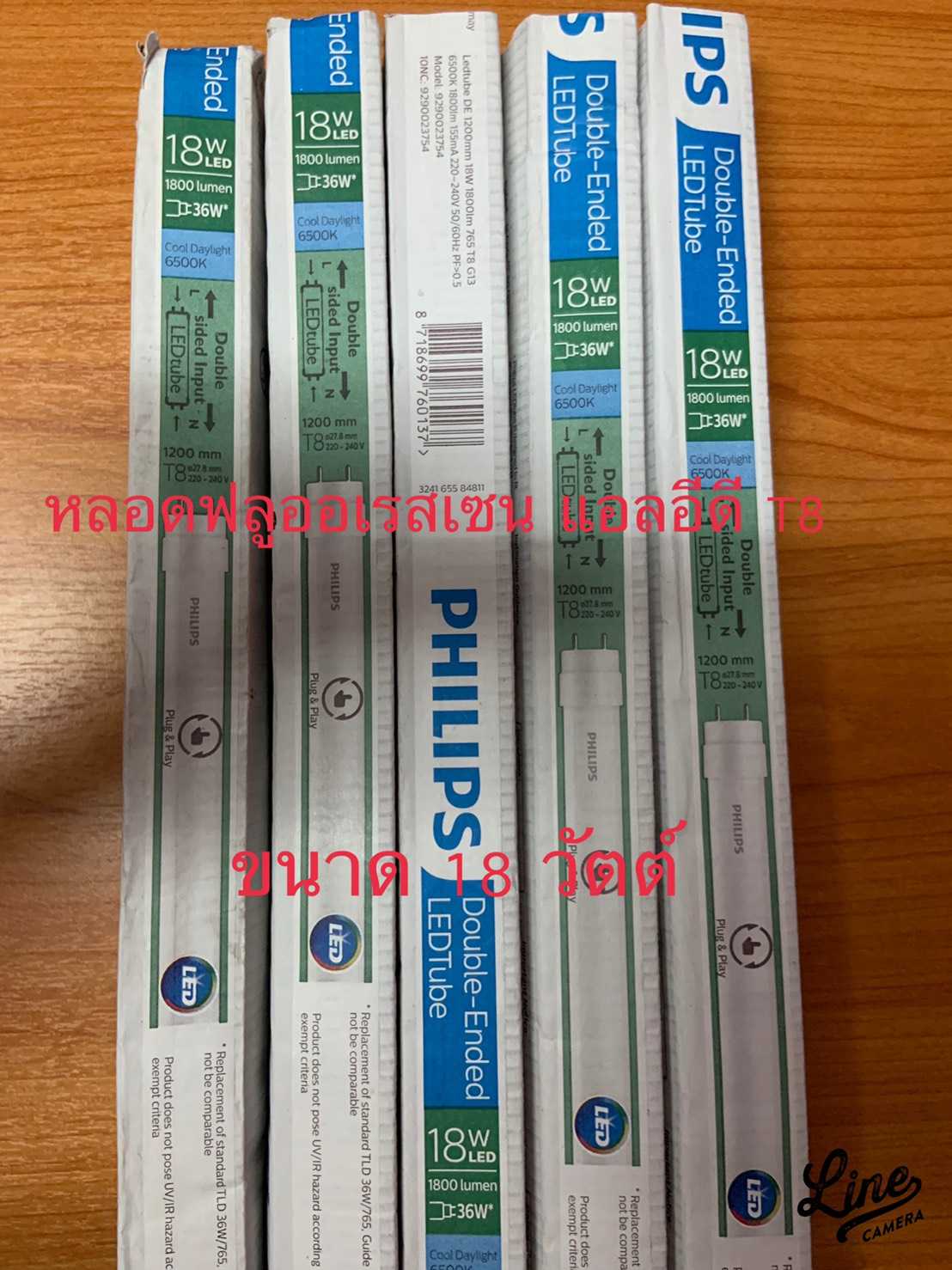 หลอด LED T8 Tube 18w ยี่ห้อ philips. แสงเดย์ไลท์ ต่อไฟแบบ Double end (ไฟเข้าหัวท้าย) ติดตั้งง่าย เพียงถอดบัลลาสต์และสตาร์เตอร์ออกก็ใช้งานได้ทันที หรือจะเลือกถอดออกเฉพาะสตาร์เตอร์ออกอย่างเดียวก็ได้ แต่จะกินไฟเพิ่ม 1 วัตต์ (แนะนำให้ถอดบัลลาสต์และสตาร์เตอร์ออกทั้งหมด) กรณีใช้กับชุดรางเดิมที่เป็นบัลลาสต์อิเล็กทรอนิกส์ หรือ วงจรอิเล็กทรอนิกส์ ให้ถอดบัลลาสต์อิเล็กทรอนิกส์ออก และต่อไฟเข้าขั้วรับหลอดทั้งสองด้านโดยไม่ผ่านวงจรอิเล็กทรอนิกส์ ช่วยให้ท่านประหยัดค่าไฟได้เป็นอย่างดี สามารถใช้ทดแทนหลอดฟลูออเรสเซนต์เดิมได้ทันที