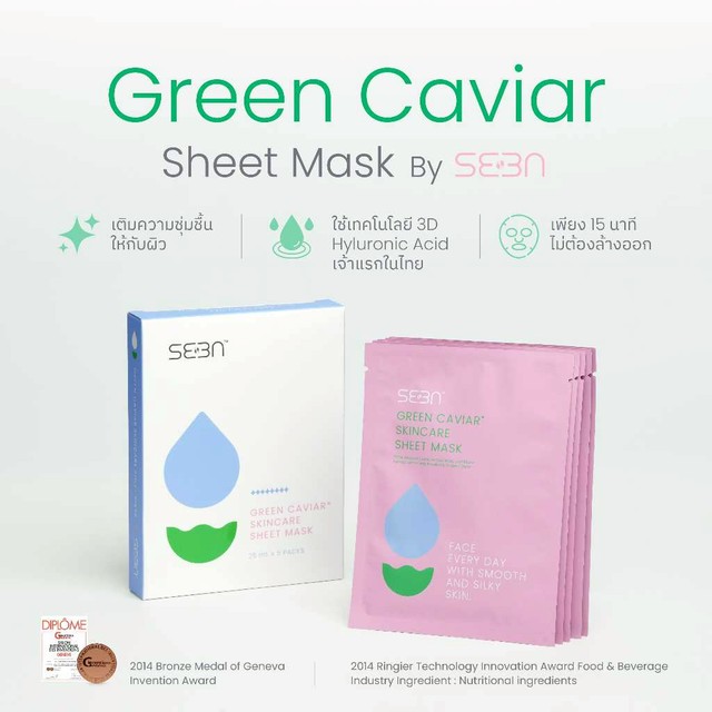 SEEN | Green Caviar Skincare Sheet Mask | มาสก์ผิวใส | เห็นผลได้ในแผ่นเดียว