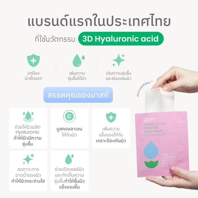 SEEN | Green Caviar Skincare Sheet Mask | มาสก์ผิวใส | เห็นผลได้ในแผ่นเดียว