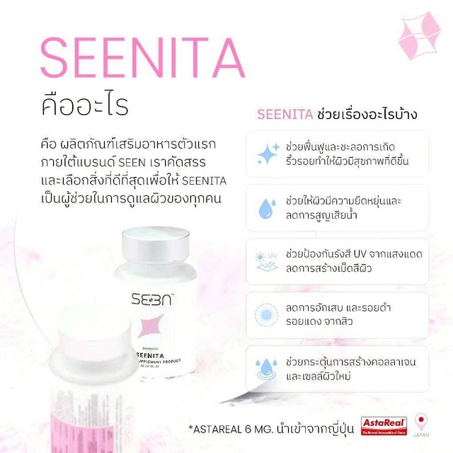 #SEEN #SEENITA #ซีน #ซีนนิต้า #อาหารเสริมผิว #astaxanthin #แอสตาแซนธิน #seabucthorn #Lycopene #CoQ10 #อาหารเสริมแม่ตุ๊ก