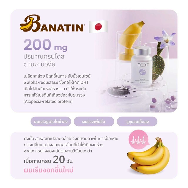 🔍Banatin ™ สารสกัดจากเปลือกกล้วย ช่วยยับยั้งฮอร์โมนที่ทำให้เกิดการผมร่วงได้
