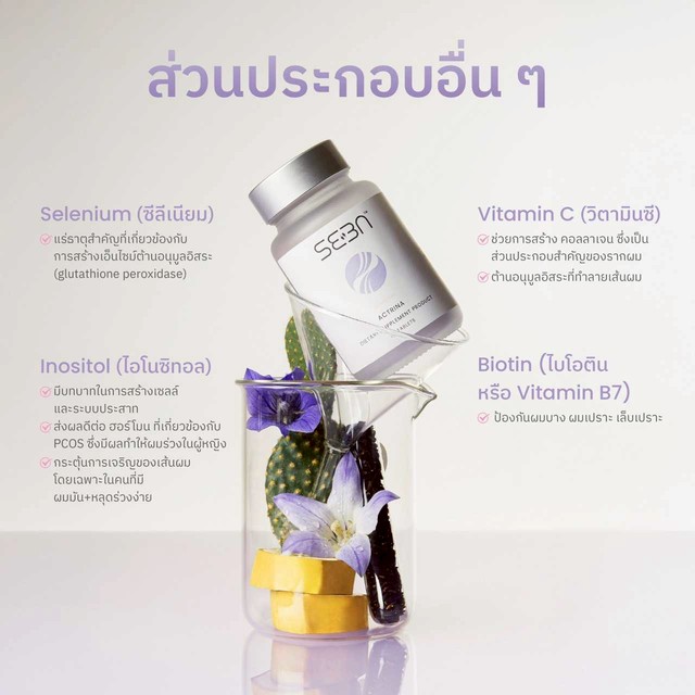 🔍 Vitamin C ต้านอนุมูลอิสระที่ทำลายเส้นผม และ เสริมการดูดซึมของธาตุเหล็ก ซึ่งจำเป็นต่อการเจริญของเส้นผม