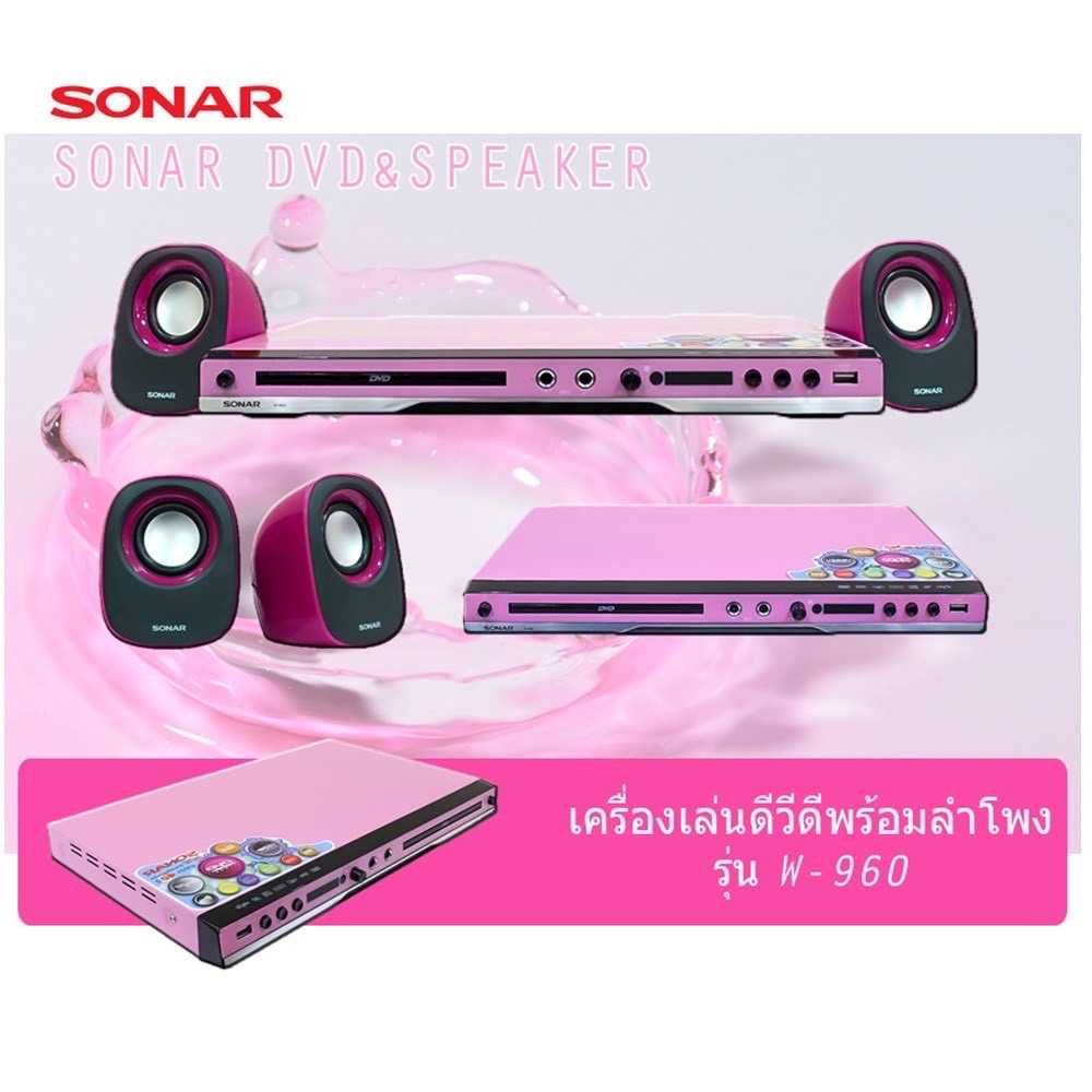 ♥ Sonar เครื่องเล่นดีวีดี รุ่น W-960 พร้อมลำโพงสีสันโดดเด่น ไม่เหมือนใครมาพร้อมคุณภาพกับหัวอ่านที่รองรับแผ่นเกือบทุกชนิด เหมาะมากยิ่งขึ้นกับแผ่นดีวีดี (DVD) ประเภทภาพยนต์ ด้วยระบบการเปลี่ยนภาษาที่มากขึ้น พร้อมซับไตเติ้ลที่หลากหลายภาษา ให้คุณได้สนุกเพลิดเพลินไม่สะดุดไปกับทุกนาทีแห่งความบันเทิง